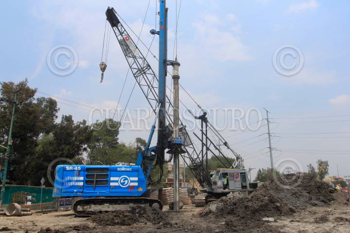 CIUDAD DE MÉXICO, 15ABRIL2021.- Trabajadores de construcción maniobraron las grúas y cavaron pozos para fijar las viguetas del puente peatonal que cruzará por calzada Ermita Iztapalapa. Desde el inicio de la pandemia han perdido más de 10 mil empleos. FOTO: GRACIELA LÓPEZ /CUARTOSCURO.COM