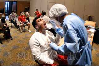 CIUDAD DE MÉXICO, 15ABRIL2021.- Los integrantes del equipo de beisbol de los Diablos Rojos del México fueron sometidos a pruebas para detectar el Covid-19, esto con miras al inicio de los entrenamientos y juegos de pretemporada previo al inicio de la campaña 2021 de la Liga Mexicana de Beisbol Profesional. FOTO: DIABLOS ROJOS DEL MÉXICO/CUARTOSCURO.COM