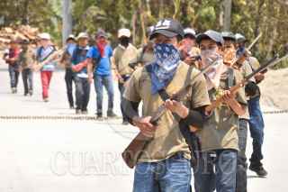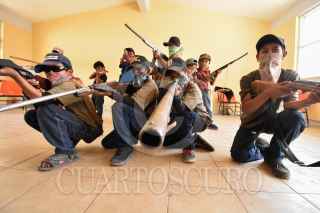 AYAHUALTEMPA, GUERRERO, 15ABRIL2021.- Autoridades de la Coordinadora Regional de Autoridades Comunitarias-Policía Comunitaria Pueblos Fundadores (CRAC-PC PF) hacen un llamado a las autoridades estatales y federales a no desestimar su movimiento armado, principalmente el de los menores de edad, ya que estos se han armado por la falta de cumplimiento de los acuerdos pactados para ayudar a los habitantes de Ayahualtempa. El coordinador de la Coordinadora Regional de Autoridades Comunitarias - Policía Comunitaria Pueblos Fundadores (CRAC-PC PF) de Ayahualtempa, Margarito Silva, hizo el llamado a las autoridades al gobierno federal para atender la problemática que persiste desde hace 15 meses y que el gobierno del estado no ha podido resolver, señalando que el presidente Andrés Manuel López Obrador no puede hacer menos el levantamiento armado de los niños, invitándolo a visitar la comunidad para ver cómo está la situación de abandono. Padres e hijos, estos últimos menores de edad, se unen y levantan en armas para defender su pueblo, formando parte de la Policía Comunitaria de la localidad de Ayahualtempa, indicando que, para ellos, el defender a su comunidad del azote del crimen organizado dejará un beneficio para sus vecinos. El pasado día sábado 34 menores de 15 años de edad desfilaron en las calles de la localidad de Ayahualtempa anunciando la incorporación de 17 nuevos integrantes de la Coordinadora Regional de Autoridades Comunitarias Policía Comunitaria Pueblos Fundadores (CRAC-PC PF), que se sumaron a los 17 niños que fueron presentados en el mes de febrero en la localidad de Alcozacán. Esto, derivado del hartazgo de esperar a que las autoridades cumplan con los acuerdos pactados hace más de 15 meses. FOTO: DASSAEV TELLÉZ ADAME /CUARTOSCURO.COM