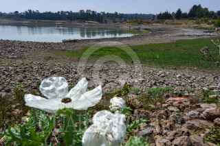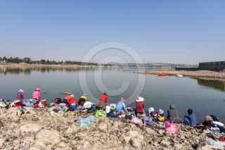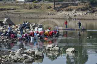 VILLA VICTORIA, ESTADO DE MÉXICO, 16ABRIL2021.- El nivel de agua en la Presa de Villa Victoria se encuentra al 33.70 por ciento de su capacidad de acuerdo al Organismo de Cuenca Aguas del Valle de México, como parte del Sistema Cutzamala que se encuentra a un 46.2 por ciento de lo llenado, continuando a la baja en esta temporada de estiaje. Las personas que viven a los alrededores cada vez se preocupan más por esta situación ya que no habían viento esto en al menos 10 años. En las orillas de esta presa la mujeres se reúnen a lavar ropa y algunos hombres pescan. FOTO: CRISANTA ESPINOSA AGUILAR /CUARTOSCURO.COM