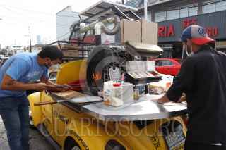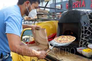 PUEBLA, PUEBLA, 16ABRIL2021.- Debido a la falta de recursos económicos para emprender un negocio en un local establecido, Miguel Vázquez, tuvo la idea de adecuar un automóvil Volkswagen para elaborar pizzas artesanales en horno de leña bajo el nombre de Vochorno Pizza Móvil FOTO: MIREYA NOVO /CUARTOSCURO.COM