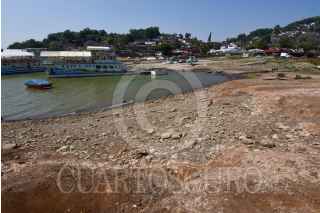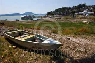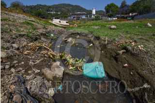 VALLE DE BRAVO, ESTADO DE MÉXICO, 17ABRIL2021.- El nivel del agua en la Presa de Valle de Bravo continúa bajando, dejando al descubierto drenajes que desembocan en este cuerpo de agua, actualmente la presa se encuentra a un 54 por ciento de su capacidad de acuerdo al último reporte del Organismo de Cuencas Aguas Del Valle de México, que en el mes de enero presentaba un 67 por ciento de su capacidad. FOTO: CRISANTA ESPINOSA AGUILAR /CUARTOSCURO.COM