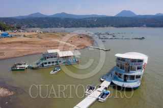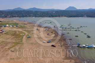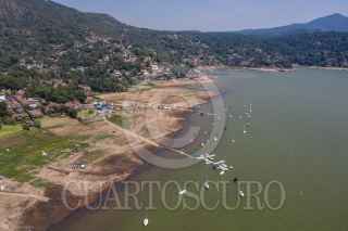 VALLE DE BRAVO, 17ABRIL2021.- La presa “Miguel Alemán Valdés” ubicada en el Valle de Bravo continúa registrando disminución en su capacidad de almacenamiento llegando a un 55.4% de acuerdo al Organismo de Cuenca Aguas del Valle de México (OCAVM); la presa había registrado más del 60% a inicios de año. La situación se ha visto reflejada en el poco turismo que actualmente llega al lugar, ya que en general les ha dejado de parecer atractivo; además de sus repercusiones en la escasez de agua a los habitantes del Valle de México mediante el Sistema Cutzamala. FOTO: MARIO JASSO/CUARTOSCURO.COM