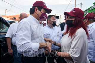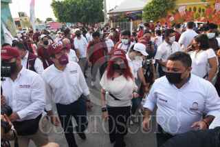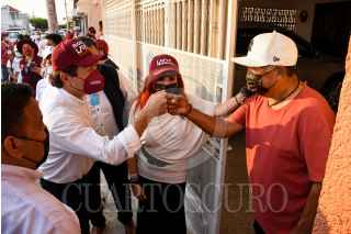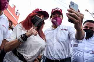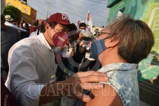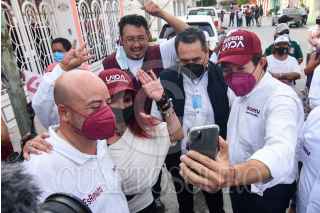 CAMPECHE, CAMPECHE, 17ABRIL2021.- Mario Delgado Carrillo, presidente Nacional del CEN de Morena, durante su gira de trabajo en el estado para acompañar Layda Sansores San Román, candidata a la gubernatura, y a Renato Sales Heredia, candidato a la alcaldía de Campeche, por las calles de la colonia Fidel Velázquez. FOTO: MICHAEL BALAM/CUARTOSCURO.COM