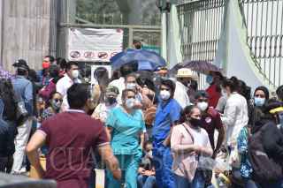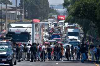 SANTA MARÍA RAYÓN, ESTADO DE MÉXICO, 19ABRIL2021.- Personal de salud de hospitales privados bloquearon la carretera Toluca-Tenango a la altura de la 22 Zona Militar, exigiendo se les aplique la vacuna contra COVID-19; en el lugar les informaron que se suspendería la vacunación hasta nuevo aviso. FOTO: CRISANTA ESPINOSA AGUILAR /CUARTOSCURO.COM