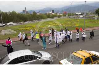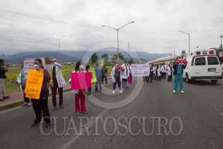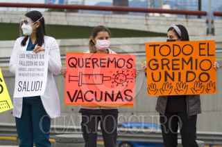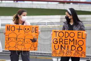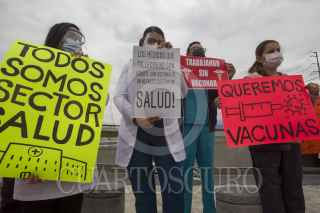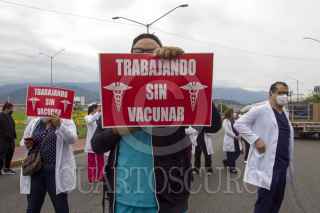 MONTERREY, NUEVO LEÓN, 19ABRIL2021.- Un grupo de médicos del sector público y privado bloquean la avenida Constitución, en el centro de la ciudad para exigir que todo el sector salud sea vacunado contra el Covid-19. FOTO: GABRIELA PÉREZ MONTIEL / CUARTOSCURO.COM