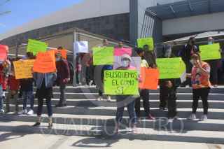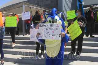CIUDAD JUÁREZ, CHIHUAHUA, 19ABRIL2021.- Propietarios de salones infantiles se manifestaron en las afueras del Pueblito Mexicano, para exigir la reapertura de sus establecimientos, al considerar que se encuentran en una crisis económica a causa de la pandemia por el Covid-19, que ha obligado al cierre de cientos negocios. María de la Luz Canizalez, propietaria de uno de los negocios de fiestas infantiles, indicó que de los 230 negocios que todavía el año anterior existían en este ramo, hoy son apenas 140, y que el resto ha tenido que cerrar por la falta de recursos para seguir operando. «El pago de impuestos, como el IMSS, el ISR, Infonavit, y otros, sigue, sin que tengamos ingresos, y pareciera que esta situación a nadie le ha importado, sin embargo, a nosotros el cierre de nuestros negocios nos tienen en la ruina», indicó. La manifestación de alrededor de 100 personas se mantuvo por espacio de dos horas, sin que las autoridades les hayan atendido. FOTO: NACHO RUIZ/CUARTOSCURO.COM