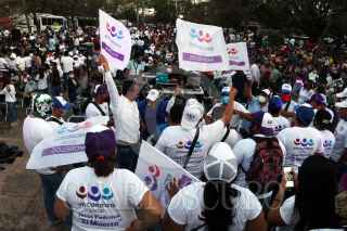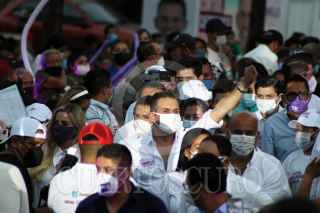 CUERNAVACA, MORELOS, 19ABRIL2021.- Arrancan campañas para renovar 36 presidencias municipales y la renovación del Congreso local en el Estado. En la contienda electoral de 45 días participan 23 partidos políticos, 10 con registro nacional y 13 con registro estatal. En la imagen un mitin de candidatos del Partido Encuentro Social, en donde no se respetó la sana distancia, medida para prevenir contagios por covid-19. FOTO: MARGARITO PÉREZ RETANA /CUARTOSCURO.COM