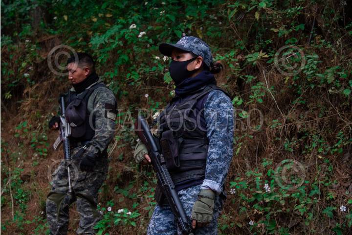 CHERÁN, MICHOACÁN, 20ABRIL2021.- Adelaida tiene 30 años, es de origen purepecha y es madre soltera. Estudió sistemas computacionales pero decidió ser policía comunitaria. En Cherán generalmente está mal visto formar parte de la policía comunitaria siendo mujer, hoy hay solo seis. Ella decidió tomar este camino, asegura, motivada por el amor al bosque y al hecho de saber que está apoyando a su comunidad. Su familia, al principio, no estaba de acuerdo con su decisión, después la aceptaron, dice, al ver su firmeza y el cambio positivo en su vida. Adelaida trabaja turnos de 24 x 24 sin descanso, por lo que no tiene mucho tiempo para hacer una vida fuera de la policia comunitaria; en su tiempo libre decide aún así arreglarse, salir a ver tiendas, procurar a su familia y hacer labores del hogar. Confiesa que ejercer como policía comunitaria ha sido difícil en algunos momentos, los casos de detenciones son un ejemplo de esto, a veces los delincuentes se ponían muy violentos con ella, por eso, asegura que con el paso de los años, ha tomado más carácter. Adalaida asegura que los índices de delincuencia bajaron considerablemente y que durante la pandemia los delitos graves bajaron, aumentando en cambio las llamadas de atención por fiestas. De las cosas que más disfruta hacer es poder ir a ayudar a apagar incendios; cuenta que como guardia comunitaria tomas más conciencia de lo que significa cuidar el campo, los bosques, las tierras, y eso es lo llena su labor. Michoacán es uno de los estados más lastimados por la violencia en México. Debido a su riqueza maderera, el municipio de Cherán, en el año 2005, comenzó a ser objetivo de la tala de árboles inmoderada e legal por parte de grupos criminales, quienes llegaban a extraer de 100 a 150 camiones llenos de troncos por día. Como consecuencia, y a medida que la actividad delictiva aumentaba en la región, el ecocidio prometía la pronta escasez y la sequía inminente en los ojos de agua. Sumado a lo anterior, los criminales comenzaron a secuestrar mujeres y niños. Defendiendo los montes de la zona, la madrugada del 15 de abril de 2011, el pueblo de Cherán se levantó en armas para defender su bosque de los madereros expulsando de paso a la policía y los políticos. A partir de ese momento, Cherán pasó a autogobernarse por usos y costumbres, instrumentando un sistema de autoridades políticas y de seguridad propias, sin la intervención de partidos políticos, como forma de evitar divisiones al interior de la comunidad. Cada uno de los cuatro distritos eligió un representante para el Consejo del Pueblo; crearon puestos de control y seguridad y establecieron nuevas leyes comunitarias. El 13 de noviembre de 2011 el Tribunal Electoral del Poder Judicial de la Federación aprobó la elección del ayuntamiento bajo el sistema de usos y costumbres. Se calcula que el crimen organizado deforestó 17,000 hectáreas a partir de 2008. Actualmente, la comunidad de Cherán lleva reforestadas 3,000. Aunque Cherán recibe presupuesto federal y estatal, se reconoce y protege su forma de gobierno. FOTO: ANDREA MURCIA /CUARTOSCURO.COM