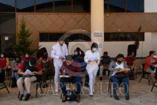 SAN CRISTÓBAL DE LAS CASAS, CHIAPAS, 20ABRIL2021.- Arranca la aplicación de vacunas contra Covid 19 a personal docente en el estado chiapaneco. El Instituto Mexicano del Seguro Social y la Secretaría de Educación Pública estarán a cargo por los próximos siete días de la logística y aplicación de dicha vacuna, la meta en el municipio es vacunar en esta semana a más de dieciséis mil maestros en las dos sedes instaladas; la Universidad Intercultural de Chiapas y el Hospital Rural San Felipe Ecatepec. FOTO: ISABEL MATEOS /CUARTOSCURO.COM