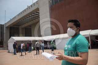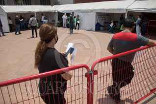 CIUDAD DE MÉXICO.20ABRIL2021.- Habitantes de la alcaldía de Cuauhtémoc, acuden a realizarse la prueba Covid 19; justo en la explanada de esta demarcación. FOTO: VICTORIA VALTIERRA/CUARTOSCURO.COM