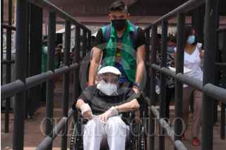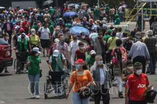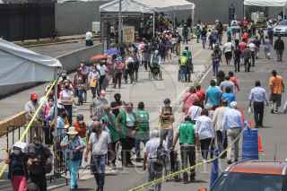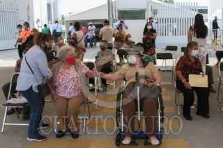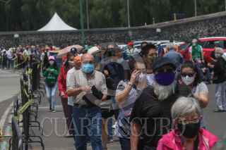 CIUDAD DE MEXICO, 20ABRIL2020.- Continua la vacunación de la segunda dosis contra COVID-19 en adultos mayores de la alcaldía Coyoacán. Desde tempranas horas cientos de personas mayores acudieron los Macro Módulos ubicados en el Estadio Universitario México 68 y al Centro de Estudios Superiores en Ciencias de la Salud. Cabe mencionar que en ambos módulos se presentaron aglomeraciones de adultos mayores y familiares. FOTO: ROGELIO MORALES /CUARTOSCURO.COM