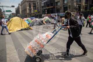 CIUDAD DE MÉXICO. 20ABRIL2021.- Un plantón permanente de indígenas triquis se encuentra bloqueando el Eje Central Lázaro Cárdenas, demandan la libertad de presos políticos en Oaxaca. FOTO: VICTORIA VALTIERRA/CUARTOSCURO.COM