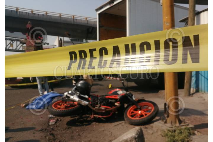 CUAUTITLÁN IZCALLI, ESTADO DE MÉXICO, 21ABRIL2021.- Murió un motociclista al chocar contra un camión en la carretera Tlalnepantla-Cuautitlán, esquina con avenida Ferrocarrilera, colonia Lechería. FOTO: ARMANDO MONROY/CUARTOSCURO.COM