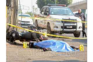 CUAUTITLÁN IZCALLI, ESTADO DE MÉXICO, 21ABRIL2021.- Murió un motociclista al chocar contra un camión en la carretera Tlalnepantla-Cuautitlán, esquina con avenida Ferrocarrilera, colonia Lechería. FOTO: ARMANDO MONROY/CUARTOSCURO.COM