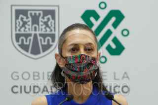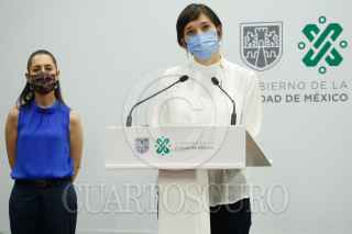 CIUDA D DE MÉXICO, 21ABRIL2020.- Claudia Sheinbaum, jefa de gobierno y Marcela Figueroa, subsecretaria de Desarrollo de la Secretaría de Seguridad Ciudadana, durante la conferencia de prensa de la Jefatura de Gobierno. FOTO: ROGELIO MORALES /CUARTOSCURO.COM