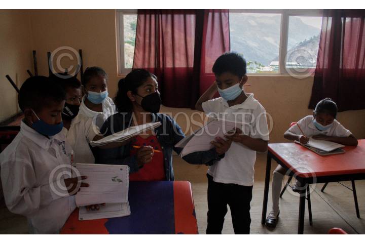 YAUTEPEC, OAXACA, 22ABRIL2021.- La comunidad de Santiago Quiavijolo regida por usos y costumbres, se unió al regreso a clases el pasado lunes en la escuela Bilingüe Gustavo Díaz Ordaz, luego de un año de pandemia . El retorno ha sido de manera ordenada y cumpliendo las medidas sanitarias. Con un total de 107 niños en los 6 grados de primaria y 7 docentes. El pasado 14 de marzo a través de asamblea general del poblado decidió regreso a clases pese que Oaxaca no ha regresado a semáforo Verde y se mantiene en naranja también sin autorización de la Secretaría de Educación Pública (SEP) esto porque en el lugar no se ha presentado ningún caso de contagio del virus SARS-COV-2. Los niños cuentan con tabletas y uniformes nuevos donados por distintas asociaciones. FOTO: ANDREA MURCIA /CUARTOSCURO.COM
