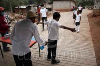 YAUTEPEC, OAXACA, 22ABRIL2021.- La comunidad de Santiago Quiavijolo regida por usos y costumbres, se unió al regreso a clases el pasado lunes en la escuela Bilingüe Gustavo Díaz Ordaz, luego de un año de pandemia . El retorno ha sido de manera ordenada y cumpliendo las medidas sanitarias. Con un total de 107 niños en los 6 grados de primaria y 7 docentes. El pasado 14 de marzo a través de asamblea general del poblado decidió regreso a clases pese que Oaxaca no ha regresado a semáforo Verde y se mantiene en naranja también sin autorización de la Secretaría de Educación Pública (SEP) esto porque en el lugar no se ha presentado ningún caso de contagio del virus SARS-COV-2. Los niños cuentan con tabletas y uniformes nuevos donados por distintas asociaciones. FOTO: ANDREA MURCIA /CUARTOSCURO.COM