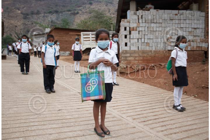 YAUTEPEC, OAXACA, 22ABRIL2021.- La comunidad de Santiago Quiavijolo regida por usos y costumbres, se unió al regreso a clases el pasado lunes en la escuela Bilingüe Gustavo Díaz Ordaz, luego de un año de pandemia . El retorno ha sido de manera ordenada y cumpliendo las medidas sanitarias. Con un total de 107 niños en los 6 grados de primaria y 7 docentes. El pasado 14 de marzo a través de asamblea general del poblado decidió regreso a clases pese que Oaxaca no ha regresado a semáforo Verde y se mantiene en naranja también sin autorización de la Secretaría de Educación Pública (SEP) esto porque en el lugar no se ha presentado ningún caso de contagio del virus SARS-COV-2. Los niños cuentan con tabletas y uniformes nuevos donados por distintas asociaciones. FOTO: ANDREA MURCIA /CUARTOSCURO.COM