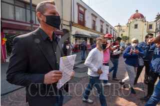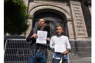 TOLUCA, ESTADO DE MÉXICO, 22ABRIL2021.- Pedro César Carrizales, conocido como “El Mijis” diputado local de San Luis Potosí y Bryan Carlos LeBaron acudieron a la Cámara de Diputados del Estado de México en donde entregaron un documento con diversas acciones promovidas para exigir la libertad de Manuel Germán Ramírez Valdovinos, privado de su libertad condenado a 43 años de prisión por la supuesta comisión del delito de homicidio de un hombre que se encuentra con vida. FOTO: CRISANTA ESPINOSA AGUILAR /CUARTOSCURO.COM