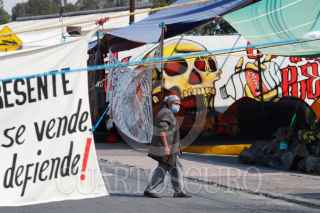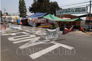 JUAN C. BONILLA, PUEBLA, 22ABRIL2021.- Habitantes del municipio de Juan C. Bonilla y pueblos aledaños, mantienen un plantón frente a las instalaciones de la empresa Bonafont como protesta por la constante extracción de agua, provocando sequía en municipios colindantes. FOTO: MIREYA NOVO/CUARTOSCURO.COM