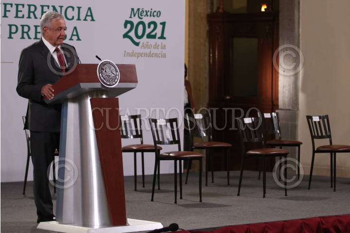 CIUDAD DE MÉXICO, 21ABRIL2021.- Andrés Manuel López Obrador, presidente de México, en compañía de la secretaria del Trabajo, Luisa María Alcalde; Tatiana Clouthier, secretaria de Economía; Zoe Robledo, titular del Instituto Mexicano del Seguro Social (IMSS); Calor Salazar Lomeli, presidente del Consejo Coordinador Empresarial, así como representantes de los trabajadores y empresarios, encabezaron la conferencia matutina para informar sobre la aprobación de la reforma que busca regular el modelo de subcontratación (outsourcing) de los trabajadores. A fin, de que reciban prestaciones, salarios y utilidades justas FOTO: GALO CAÑAS/CUARTOSCURO.COM