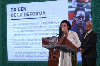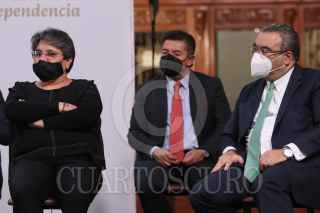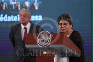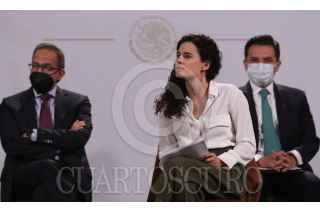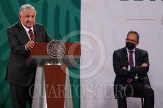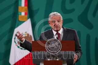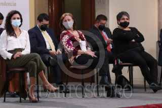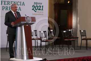 CIUDAD DE MÉXICO, 21ABRIL2021.- Andrés Manuel López Obrador, presidente de México, en compañía de la secretaria del Trabajo, Luisa María Alcalde; Tatiana Clouthier, secretaria de Economía; Zoe Robledo, titular del Instituto Mexicano del Seguro Social (IMSS); Calor Salazar Lomeli, presidente del Consejo Coordinador Empresarial, así como representantes de los trabajadores y empresarios, encabezaron la conferencia matutina para informar sobre la aprobación de la reforma que busca regular el modelo de subcontratación (outsourcing) de los trabajadores. A fin, de que reciban prestaciones, salarios y utilidades justas FOTO: GALO CAÑAS/CUARTOSCURO.COM