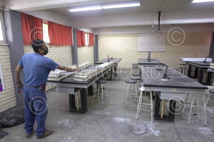 MONTERREY, NUEVO LEÓN, 23ABRIL2021.- Ante un posible regreso a clases presenciales en educación básica en junio de 2021, después que los maestros sean vacunados; autoridades estatales, el instituto constructor de infraestructura física educativa y deportiva de Nuevo León (ICIFED), directivos y docentes constataron y focalizaron los daños colaterales tras el cierre de los planteles y evaluar las condiciones de más de seis mil planteles educativos de educación básica para el regreso a clases. FOTO: GABRIELA PÉREZ MONTIEL / CUARTOSCURO.COM