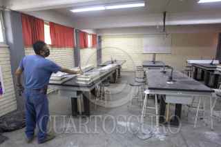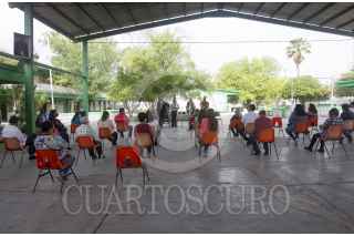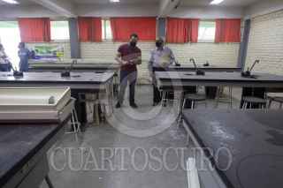 MONTERREY, NUEVO LEÓN, 23ABRIL2021.- Ante un posible regreso a clases presenciales en educación básica en junio de 2021, después que los maestros sean vacunados; autoridades estatales, el instituto constructor de infraestructura física educativa y deportiva de Nuevo León (ICIFED), directivos y docentes constataron y focalizaron los daños colaterales tras el cierre de los planteles y evaluar las condiciones de más de seis mil planteles educativos de educación básica para el regreso a clases. FOTO: GABRIELA PÉREZ MONTIEL / CUARTOSCURO.COM