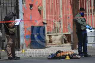 CIUDAD JUÁREZ, CHIHUAHUA, 23ABRIL2021.-Un hombre fue ejecutado en calles de la colonia la cuesta y posteriormente prendieron fuego a su cuerpo. El hecho se registró en calle Sierra Maestra, cruce con calle Montes Urales, de la citada colonia, donde el cuerpo quedó a la vista de toda la gente, en la vía pública. Vecinos del lugar luego de escuchar detonaciones de arma de fuego, se percataron de la presencia del cuerpo el cual iniciaba a prenderse, por lo que de inmediato dieron parte a las autoridades El hombre no fue identificado hasta el momento, el cual vestía pantalón de mezclilla azul, camisa negra de manga larga y zapatos de color negro. El cuerpo de la víctima quedó en medio de la calle boca abajo y con parte de la espalda al descubierto debido a que ya se había quemado parte de su camisa. Al lugar llegaron elementos de diversas corporaciones policiacas para realizar las investigaciones correspondientes, así como un recorrido por el sector para tratar de localizar a los culpables de este nuevo hecho violento. FOTO: NACHO RUIZ /CUARTOSCURO.COM