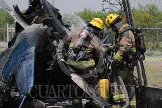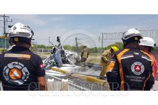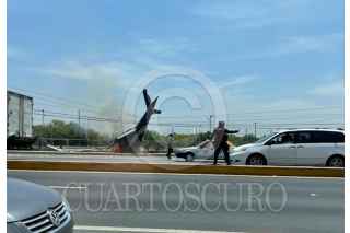 APODACA, NUEVO LEÓN, 23ABRIL2021.- El piloto de una aeronave que salió del Aeropuerto del Norte y se dirigía a un helipuerto privado en Monterrey, sufre un accidente sobre la carretera a Laredo en el kilómetro 19, se confirma el fallecimiento del único ocupante del helicóptero privado. FOTO: CUARTOSCURO.COM