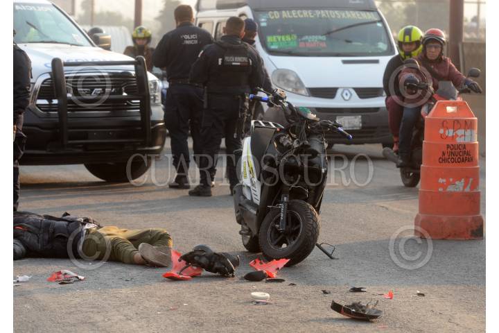 ESTADO DE MÉXICO, 14ABRIL2021.- Un hombre perdió la vida cuando circulaba en una motoneta por la carretera México-Texcoco en el puente vehicular conocido como Piedras Negras En el Municipio de san Vicente Chicoloapan. FOTO: ARMANDO MONROY /CUARTOSCURO.COM