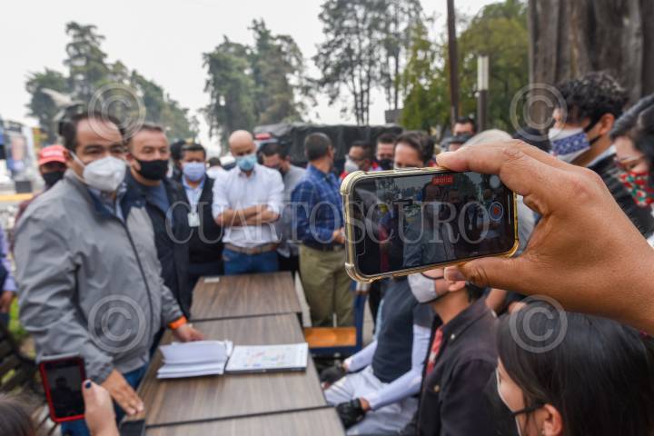 TOLUCA, ESTADO DE MÉXICO, 23ABRIL2021.- Después de la manifestación que realizaron Colectivos de ciclistas en día de ayer en Paseo Colón después del retiro sorpresivo de delineadores en la ciclovía de esta vialidad sostuvieron una reunión con el Secretario de Movilidad estatal Luis Gilberto Limón, acordando que se continuará con las mesas de diálogo, se dará mantenimiento constante a la ciclovías de la ciudad, y se tendrán operativos constantes para vigilar que los automovilistas respeten este espacio. FOTO: CRISANTA ESPINOSA AGUILAR /CUARTOSCURO.COM