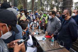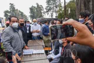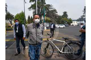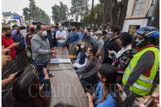 TOLUCA, ESTADO DE MÉXICO, 23ABRIL2021.- Después de la manifestación que realizaron Colectivos de ciclistas en día de ayer en Paseo Colón después del retiro sorpresivo de delineadores en la ciclovía de esta vialidad sostuvieron una reunión con el Secretario de Movilidad estatal Luis Gilberto Limón, acordando que se continuará con las mesas de diálogo, se dará mantenimiento constante a la ciclovías de la ciudad, y se tendrán operativos constantes para vigilar que los automovilistas respeten este espacio. FOTO: CRISANTA ESPINOSA AGUILAR /CUARTOSCURO.COM