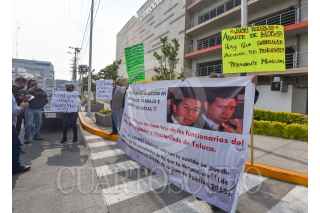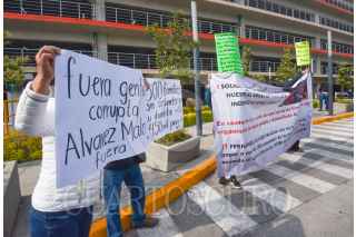 TOLUCA, ESTADO DE MÉXICO, 23ABRIL2021.- Ex empléanos del Organismo de Agua y Saneamiento de Toluca se manifestaron en las instalaciones de este organismo denunciando despidos injustificados durante la pandemia por COVID-19. FOTO: CRISANTA ESPINOSA AGUILAR /CUARTOSCURO.COM