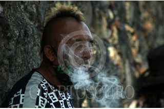 CUERNAVACA, MORELOS, 23ABRIL2021.- Decenas de adultos se reunieron esta tarde en la calle Jorge Cazares del centro de la ciudad, para exigir se autorice un sitio publico donde puedan reunirse y consumir marihuana de manera segura. En la imagen un consumidor de marihuana fuma un cigarrillo. FOTO: MARGARITO PÉREZ RETANA /CUARTOSCURO.COM