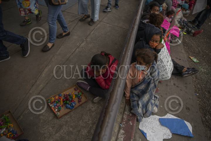 TIJUANA, BAJA CALIFORNIA, 23ABRIL2021.- Decenas de migrantes mexicanos y centroamericanos que se encuentran instalados en la garita de “El Chaparral” se manifestaron en la garita Internacional de San Ysidro con el objetivo de que sean escuchados y atendidos por las autoridades de Estados Unidos respecto al asilo político, esto debido a la situación crítica que viven en sus países de origen. Los migrantes han comentado que no se detendrán en sus manifestaciones hasta que se tomen cartas en el asunto por parte de Estados Unidos. Agentes del CBP (Oficina de Aduanas y Protección Fronteriza ) instalaron un fuerte operativo en la entrada del cruce fronterizo para para evitar que los migrantes ingresen al país. FOTO: OMAR MARTÍNEZ /CUARTOSCURO.COM