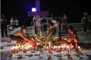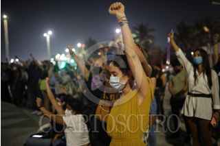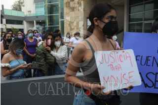 VERACRUZ, VERACRUZ., 23ABRIL2021.- Cientos de personas, principalmente mujeres, se manifestaron por el feminicidio de Monserrat Bendimes, quién en días pasados fue brutalmente atacada a golpes por su pareja Marlon "N", provocándole una fractura de cráneo derivando una muerte cerebral. Las manifestantes y familiares de Monse acudieron a un restaurante propiedad del presunto feminicida, y posteriormente realizaron un acto pacífico en la Antimonumenta de la ciudad de Veracruz. Marlon "N", así como sus padres, se encuentran prófugos de la justicia. FOTO: VICTORIA RAZO/CUARTOSCURO.COM