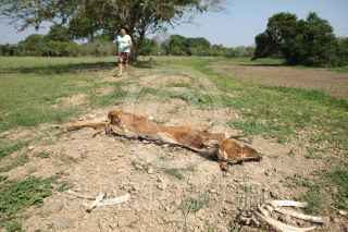 JALAPA, TABASCO, 24ABRIL2021.- Reses muertas, pastura seca o muerta, escasez de agua en campo y jagüeyes secos es como se encuentran el ato ganadero en varias localidades debido al estiaje. En Tacotalpa este mismo fenómeno aunado a la ola de calor seca el río La Sierra, y la zona platanera sufre escasez del líquido. FOTO: CARLOS CANABAL OBRADOR/CUARTOSCURO.COM