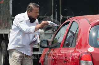 CIUDAD DE MÉXICO, 24ABRIL2021.- Alfredo Adame, actor candidato a diputado federal del distrito 14 de Tlalpan por parte del partido político Redes Sociales Progresistas (RSP) realizó su arranque de campaña en la carretera Picacho-Ajusco repartiendo volantes con sus propuestas electorales. FOTO: MARIO JASSO/CUARTOSCURO.COM