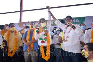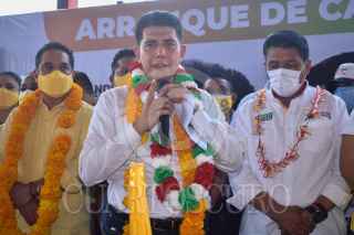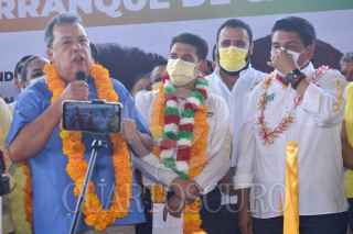 CHILPANCINGO, GUERRERO, 24ABRIL2021.- Contando con el respaldo del ex gobernador y el candidato a la gubernatura de Guerrero, Ángel Aguirre Rivero y Mario Moreno Arcos respectivamente, el candidato a la presidencia municipal de Chilpancingo por la coalición PRI-PRD, Alejandro Arcos Catalán, se comprometió a mejorar el abastecimiento de agua potable en la capital del estado, de ser necesario "traeremos agua del río Balsas para que todas las familias de Chilpancingo tengan este servicio". FOTO: DASSAEV TÉLLEZ ADAME/CUARTOSCURO.COM