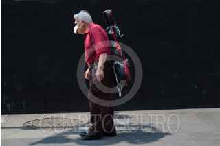 CIUDAD DE MÉXICO, 25ABRIL2021.- Un músico de la tercera edad inicia su jornada en el Centro Histórico, en donde se gana la vida a cambio de canciones, FOTO: MOISÉS PABLO/CUARTOSCURO.COM