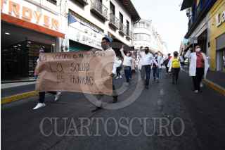XALAPA, VERACRUZ, 25ABRIL2021.- Personal médico del Centro Estatal de Cancerología de Veracruz y del Instituto Veracruzano de Salud Mental marcharon para manifestar su inconformidad ya que aún no ha sido vacunado contra el Covid-19 todo el personal de estos hospitales. FOTO: YERANIA ROLÓN/CUARTOSCURO.COM