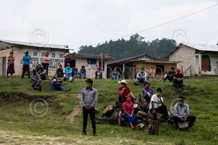 ALTAMIRANO, CHIAPAS, 25ABRIL2021.- Continuan las despedidas del Escuadron 421; delegación maritima del Ejercito Zapatista de Liberación Nacional, conformada por siete zapatistas quienes iniciarán su travesía, primero por tierra hasta el puerto donde un barco zarpará con rumbo a Europa teniendo como objetivo compartir la palabra y experiencias con organizaciones y población civil en diferentes paises de dicho continente y encontrarse con otras luchas. En el Caracol "Semillero de la comandanta Ramona", fabricaron una replica de un barco de más de 100 metros con la leyenda "Despertad" y una bandera zapatista en el mastil, el cual es resguardado por milicianos, tambien se presentaron embarcaciones de madera a tamaño escala, talladas y pintadas a mano por los zapatistas de los diversos caracoles con leyendas alusivas al viaje como "Ya no soy santa pero sí María". FOTO: ISABEL MATEOS /CUARTOSCURO.COM