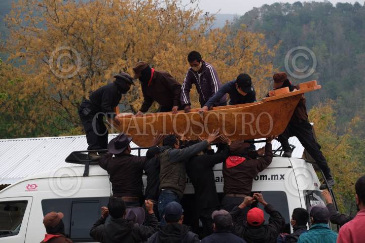 ALTAMIRANO, CHIAPAS, 26ABRIL2021.- Los mujeres y hombres del Ejército Zapatista de Liberación Nacional iniciaron su ruta en carretera para dirigirse a Isla Mujeres, Quintana Roo, en donde habrán de zarpar rumbo al Viejo Continente, en donde esperan compartir experiencias de la lucha que han vivido en el sureste mexicano y aprender de las luchas que comunidades inconformes con sus gobiernos han sostenido para obtener su autonomía. El primer punto de esta travesía será el puerto de Vigo, en la comunidad autónoma de Galicia, España, ahí desplegarán una gran manta con la frase ¡Despertad". Consigo llevan cuatro cayucos de madera; el primera representa a los pueblos originarios de raíz maya; el segundo a la etapa del clandestinidad y el alzamiento; el tercero, a la autonomía, y el cuarto a la infancia zapatistas. Hoy los que se quedan despidieron con abrazos y mensajes de alientos a los que se van y esperan que vuelvan pronto, en el Centro de Adiestramiento Marítimo-Terrestre Zapatista Semillero Comandanta Ramona. FOTO: ISABEL MATEOS/CUARTOSCURO.COM