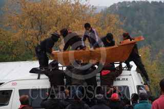 ALTAMIRANO, CHIAPAS, 26ABRIL2021.- Los mujeres y hombres del Ejército Zapatista de Liberación Nacional iniciaron su ruta en carretera para dirigirse a Isla Mujeres, Quintana Roo, en donde habrán de zarpar rumbo al Viejo Continente, en donde esperan compartir experiencias de la lucha que han vivido en el sureste mexicano y aprender de las luchas que comunidades inconformes con sus gobiernos han sostenido para obtener su autonomía. El primer punto de esta travesía será el puerto de Vigo, en la comunidad autónoma de Galicia, España, ahí desplegarán una gran manta con la frase ¡Despertad". Consigo llevan cuatro cayucos de madera; el primera representa a los pueblos originarios de raíz maya; el segundo a la etapa del clandestinidad y el alzamiento; el tercero, a la autonomía, y el cuarto a la infancia zapatistas. Hoy los que se quedan despidieron con abrazos y mensajes de alientos a los que se van y esperan que vuelvan pronto, en el Centro de Adiestramiento Marítimo-Terrestre Zapatista Semillero Comandanta Ramona. FOTO: ISABEL MATEOS/CUARTOSCURO.COM