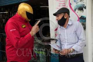 CIUDAD DE MÉXICO, 26ABRIL2021.- Tinieblas, luchador profesional retirado, realizó campaña por la alcaldía de Venustiano Carranza, en la Colonia Morelos; hablo con vecinos de esta demarcación y lo acompañó, el aspirante a Diputado Local Ricardo Valderrama. FOTO: VICTORIA VALTIERRACUARTOSCURO.COM