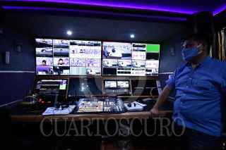 CHILPANCINGO, GUERRERO, 26ABRIL2021.- Prepara el Instituto Electoral y de Participación Ciudadana Guerrero (IEPCGro) el Auditorio Estatal Sentimientos de la Nación (ASN) para realizar el primer debate con los candidatos a gobernador del estado. Esto con el equipo que se usaron en el 2018 para los debates de los candidatos a la presidencia de la República. Además, el IEPCGro sí considera un espacio para Morena en el primer debate público entre candidatos y candidatas a la gubernatura de Guerrero en caso de que el Tribunal Electoral del Poder Judicial de la Federación (TEPJF) resuelva restituir la candidatura a Félix Salgado Macedonio. Entrevistado esta tarde en las instalaciones del Auditorio Sentimientos de la Nación, en Chilpancingo, donde se llevará a cabo el debate el próximo miércoles a las 7 de la noche, el consejero electoral Amadeo Guerrero Onofre, presidente de la Comisión Especial de Debates Públicos, dijo que en total se tiene considerada la participación de 8 candidaturas en el debate, incluida la de Morena. Afirmó que de esa manera se aseguraría a Salgado Macedonio su participación en caso de que mañana el TEPJF resuelva de manera favorable una impugnación que éste promovió en contra de la determinación del Consejo General del Instituto Nacional Electoral (INE) con la que se le canceló su candidatura por no haber presentado reportes de gastos de precampaña. FOTO: DASSAEV TÉLLEZ ADAME/CUARTOSCURO.COM