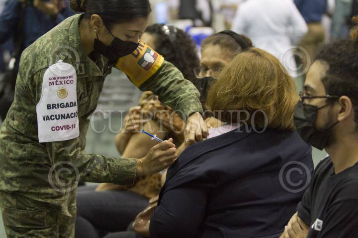 SAN NICOLÁS DE LOS GARZA, NUEVO LEÓN, 27ABRIL2021.- La jornada de vacunación contra el Covid-19 a maestros de Nuevo León inició en las instalaciones dentro de la Universidad Autónoma de Nuevo León. Según datos de la Secretaría de Salud en el estado, se estima vacunar a más de 120 mil docentes del 27 de abril al 5 de mayo. FOTO: GABRIELA PÉREZ MONTIEL / CUARTOSCURO.COM