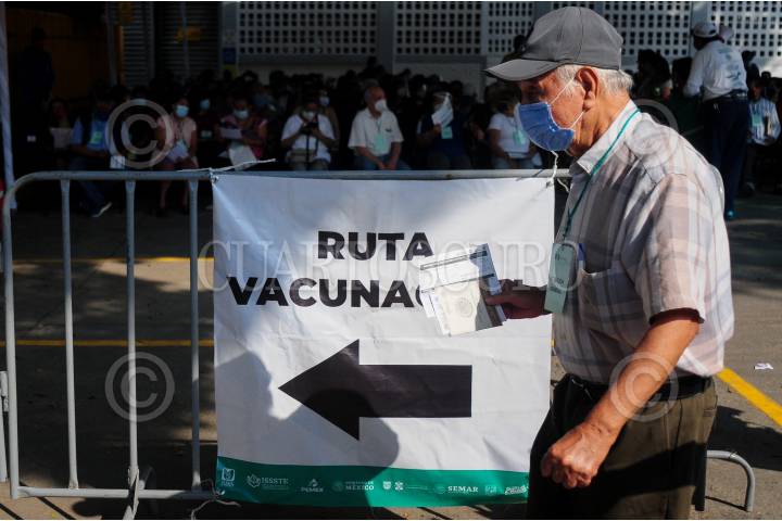 CIUDAD DE MÉXICO, 27ABRIL2021.- Adultos mayores de la Alcaldía Gustavo A. Madero asistieron a las instalaciones de la Preparatoria N°9 de la UNAM y del Instituto Politécnico Nacional, para aplicarse la segunda dosis de la vacuna contra el Covid-19. El biológico que se utilizó para la inmunización de este sector vulnerable de la sociedad fue la vacuna SputnikV, elaborada en Rusia. FOTO: DANIEL AUGUSTO /CUARTOSCURO.COM